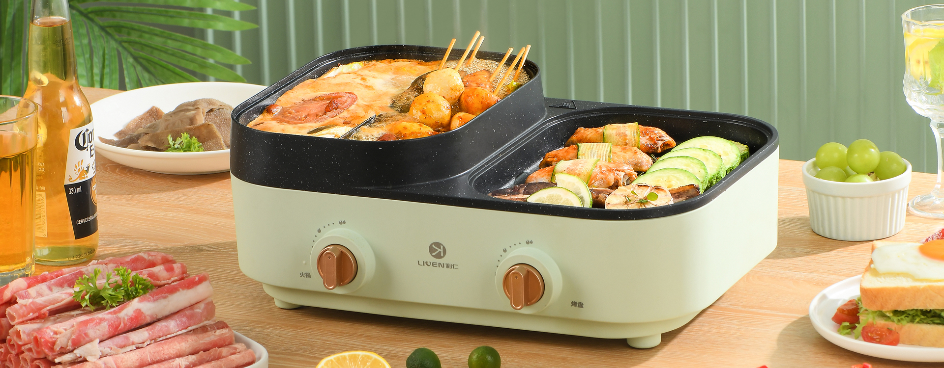 涮烤一體,可單獨(dú)涮煮,也可單獨(dú)煎烤